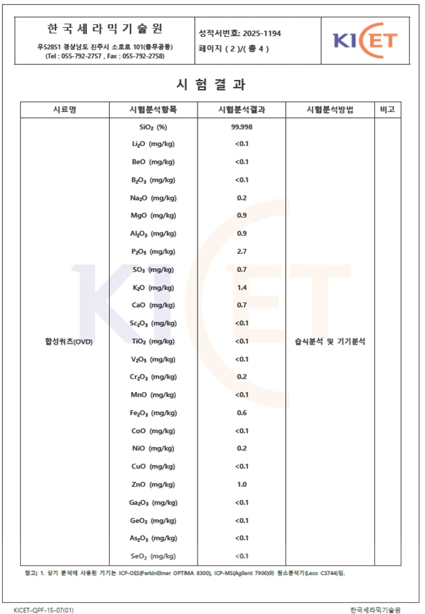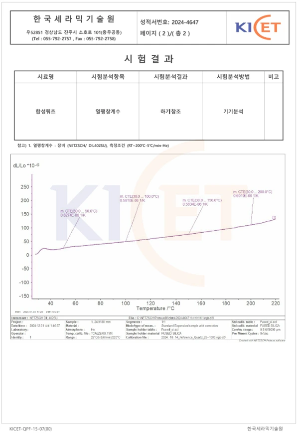 | 열팽창율 | 온도 30 ~ 200℃에서 6.0 × 10-7/K 이하 |